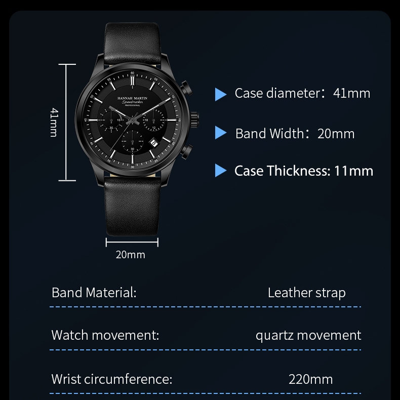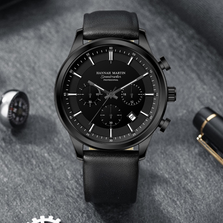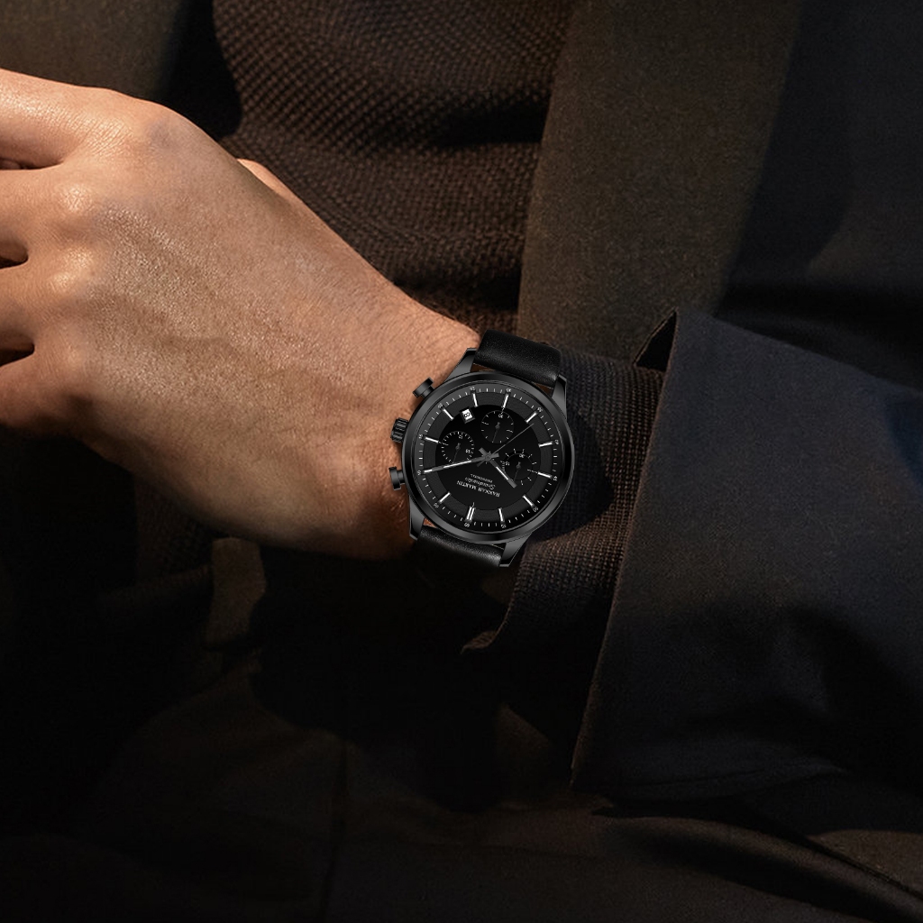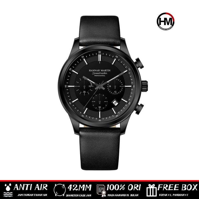 [Mall] Jam Tangan Pria HANNAH MARTIN 1431 | Original Kronograf Quartz, Kulit Premium, Tahan Air, Analog & Elegan