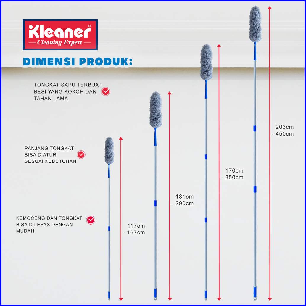 Kleaner Kemoceng Fleksibel Gagang Extend Teleskopik Abu Abu
