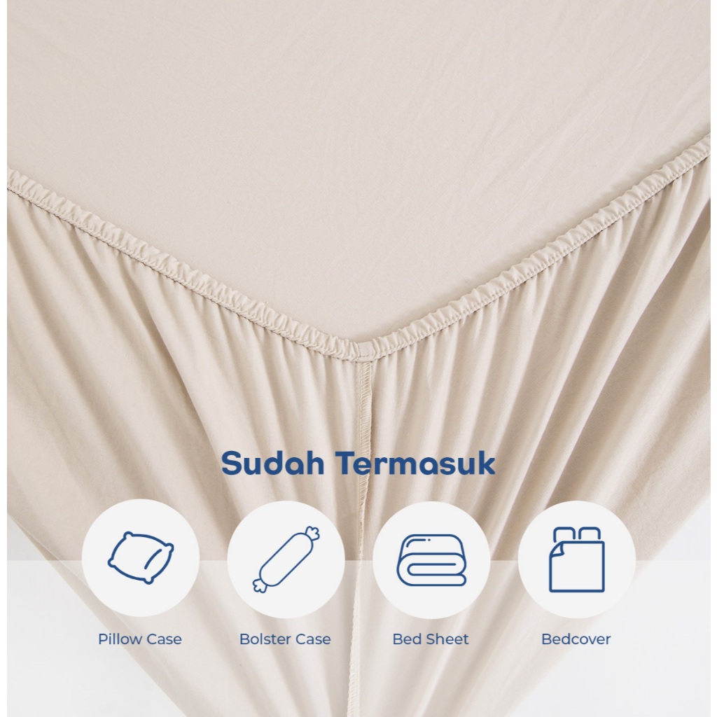 [Mall] Bed Cover Set Dengan Sprei Set, Sarung Bantal Dan Sarung Guling Full Pressing Karet Keliling Lembut Motif Polos - Seprei