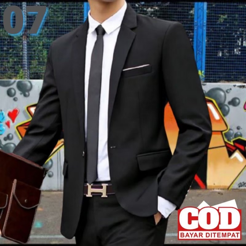SETELAN JAS PRIA/ setelan jas hitam list putih dan celana slimfit formal stelan jas hitam pria