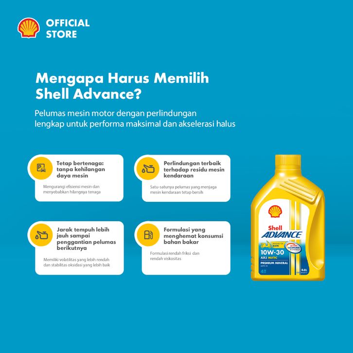 [Mall] OLI MOTOR MATIC SHELL ADVANCE AX5 SCOOTER 10W-30 [0.8L] PELUMAS KENDARAAN BERMOTOR | MELINDUNGI USIA MESIN