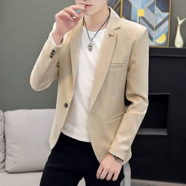 Jas Cream Blazer Pria Jas Formal Pria Blazer Slim fit Jas KPOP