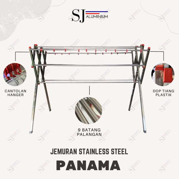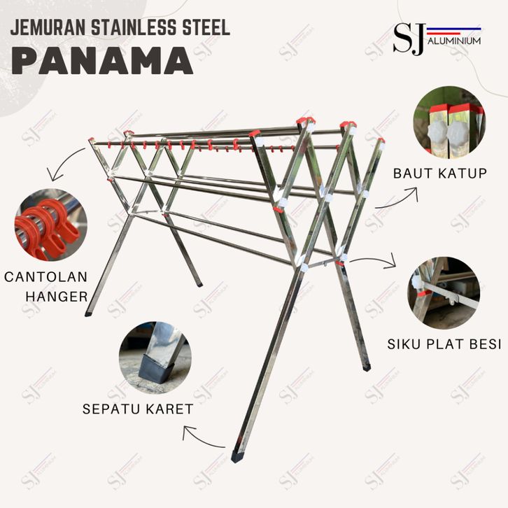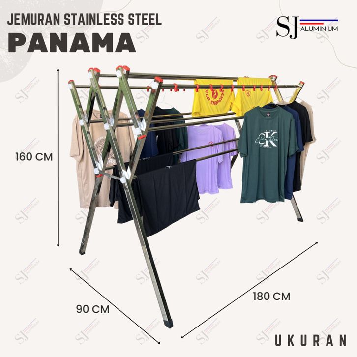 Jemuran Baju Stainless Jumbo Lipat - Jemuran Pakaian Portable 5 Tiang Gantungan Baju Outdoor Besi Kokoh