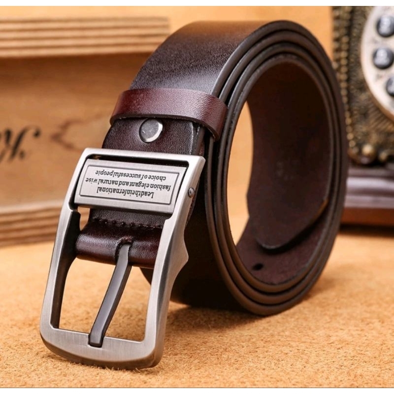 PROMO sabuk kulit asli 2 lapisan termurah ikat Pinggang pria kulit kepala besi ban gesper fashion lelaki
