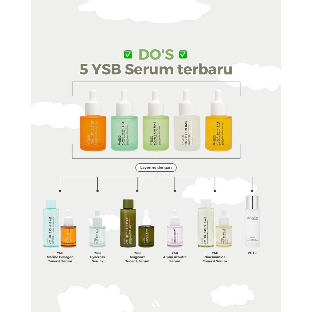 Serum Kojic Acid, Toner Niaci, Serum Hyacross, Serum Mandelic Acid, Serum Spirulina, Serum Vitamin C, Serum Salic, Serum Mugwort