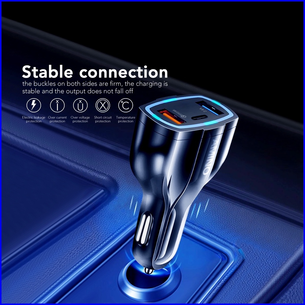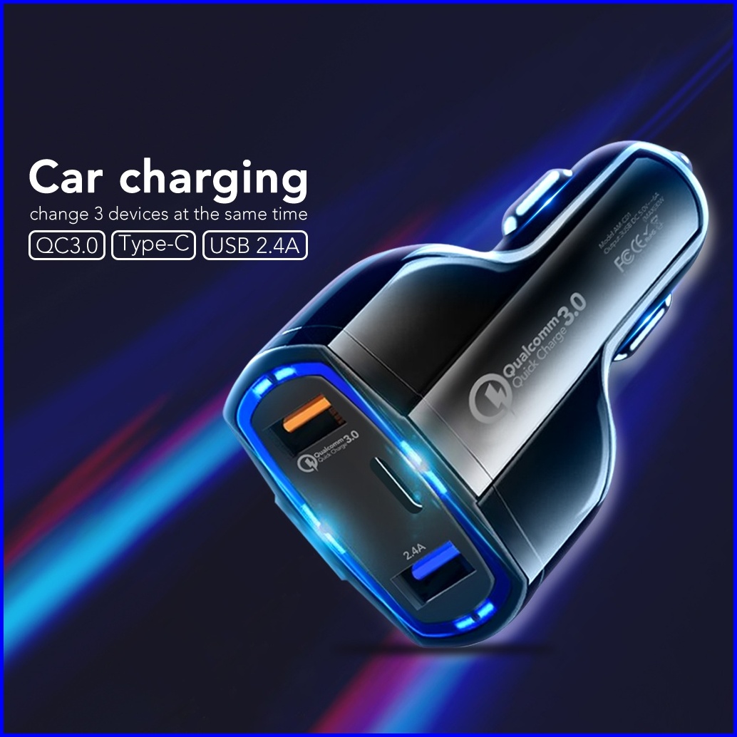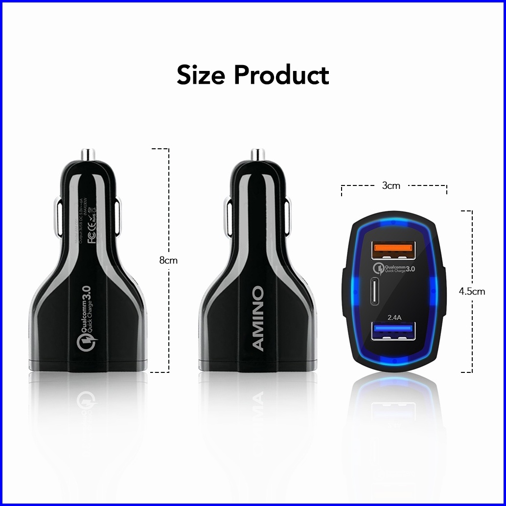 Amino Am-c01 43w 30w Car Charger Fast Charger 3 Port Usb Qc 3.0 Type C Output Saver Mobil Lampu