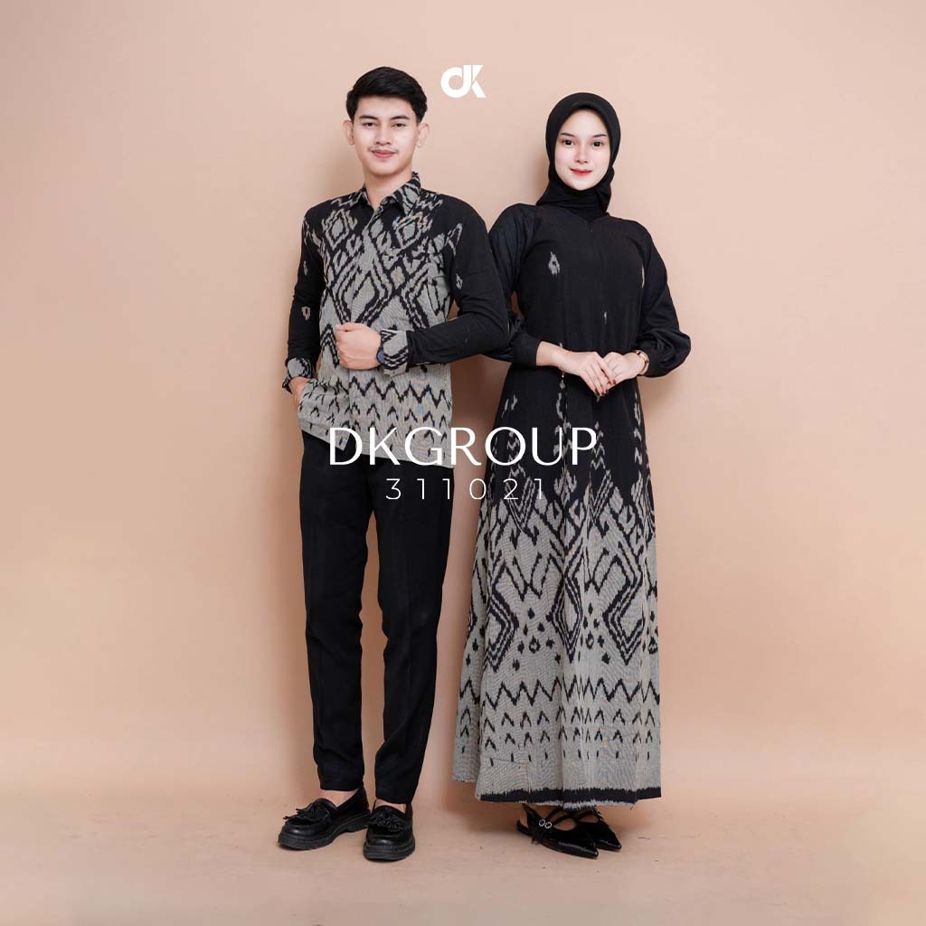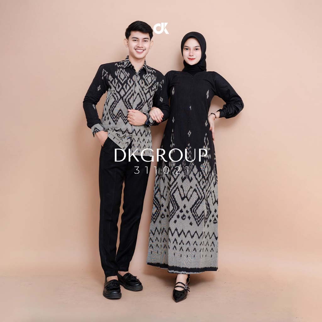 [READY STOCK] Set Couple Tenun Yaya Dress Motif Black Diamond Couple Kondangan Sarimbit Keluarga Baju Lebaran