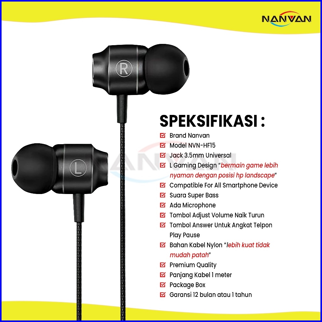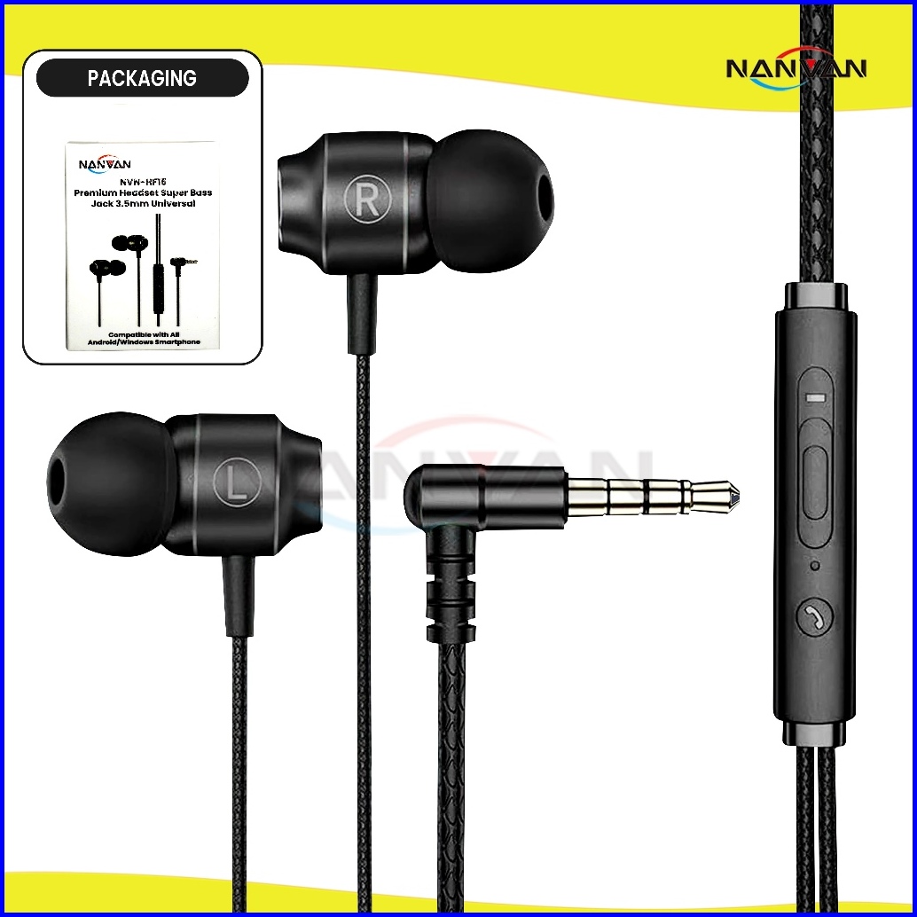 Nanvan Nvn-hf15 Headset Earphone Jack 3.5mm Super Bass Universal For Handphone Smartphone