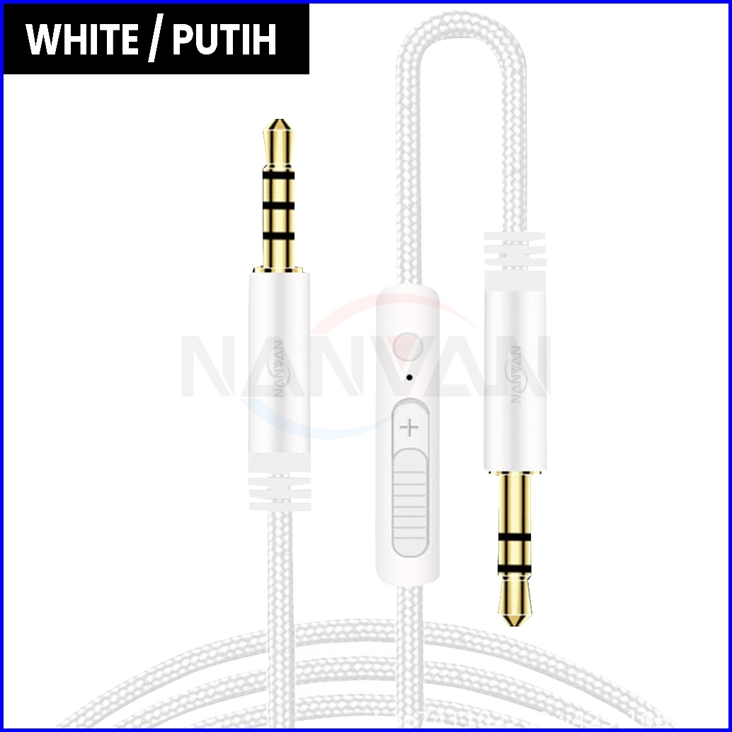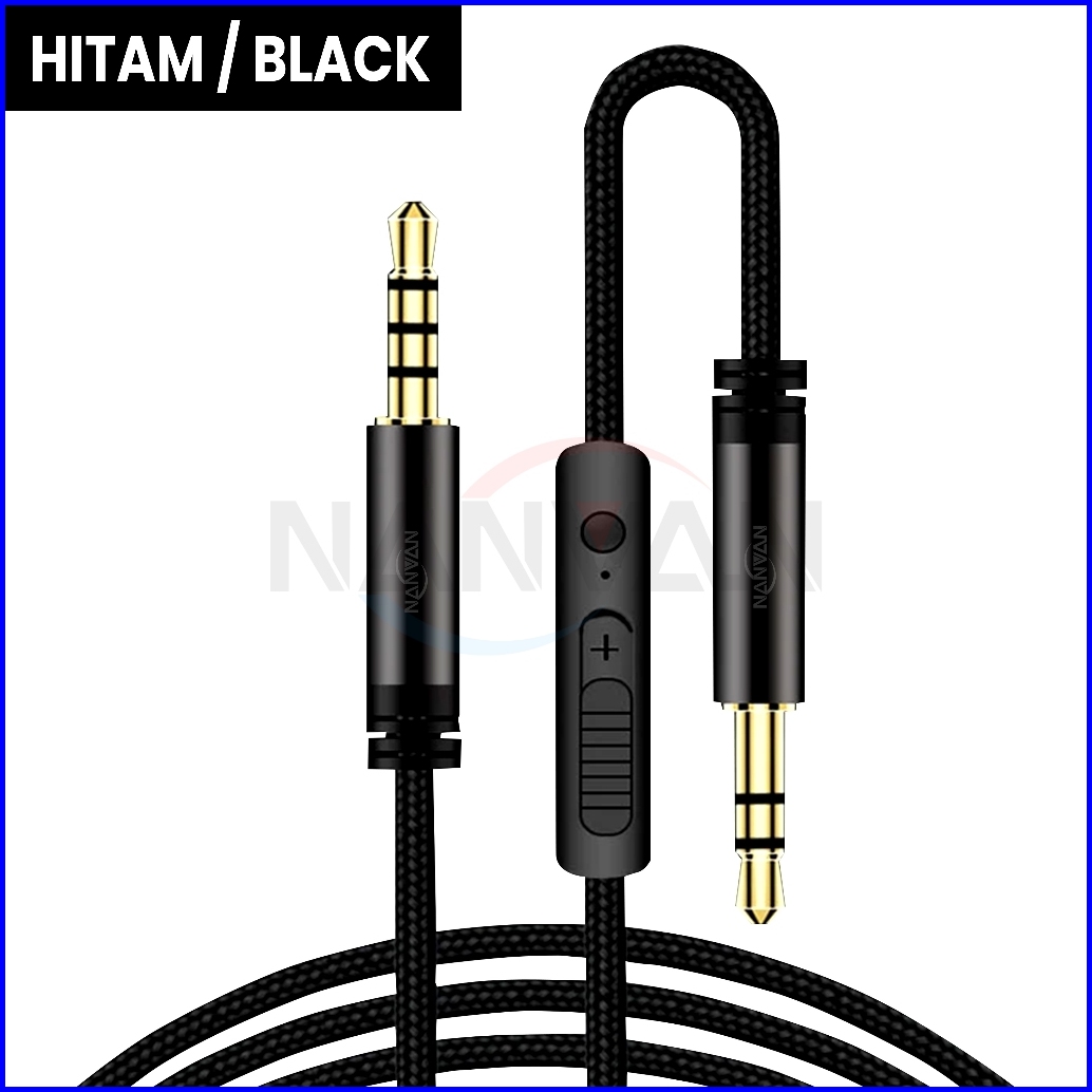 Nanvan Kabel Aux Audio Dengan Microphone Pengaturan Suara Jack 3.5mm Untuk Hp Ke Speaker Mobil