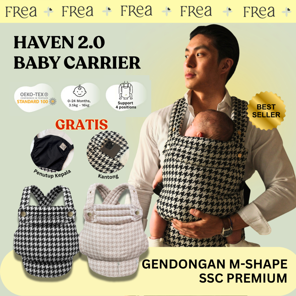 FREA HAVEN 2.0 Baby Carrier - Gendongan Bayi Premium M-Shape SSC FREE PENUTUP KEPALA