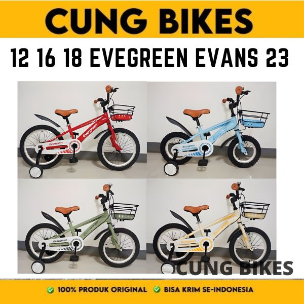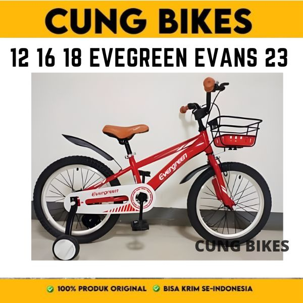 Sepeda Anak Evergreen Evans D23 ukuran 12 16 18 Inch velg Alloy Keranjang Besi