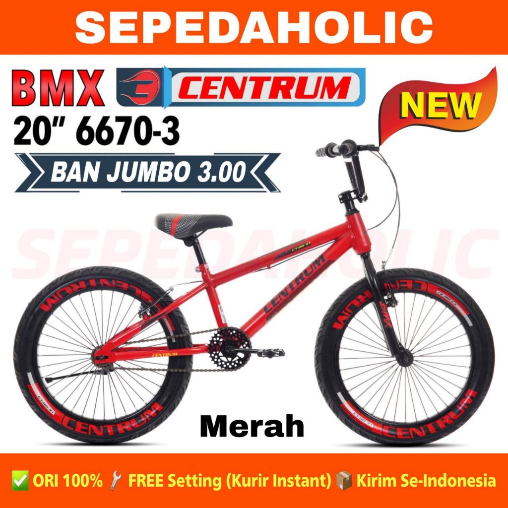 Sepeda Anak Laki BMX CENTRUM 6670-3 6670-1 Ukuran 20 Inch Ban 2.4 & Jumbo 3.0 Warna Usia 8-12 Tahun