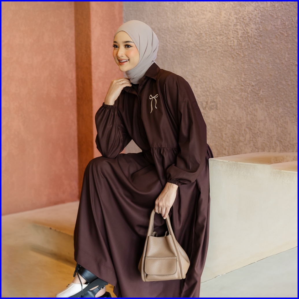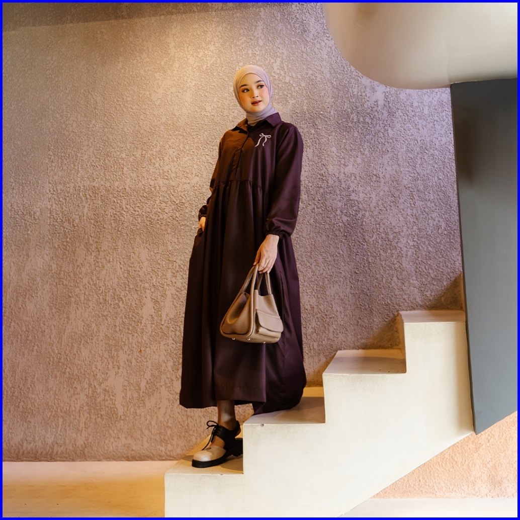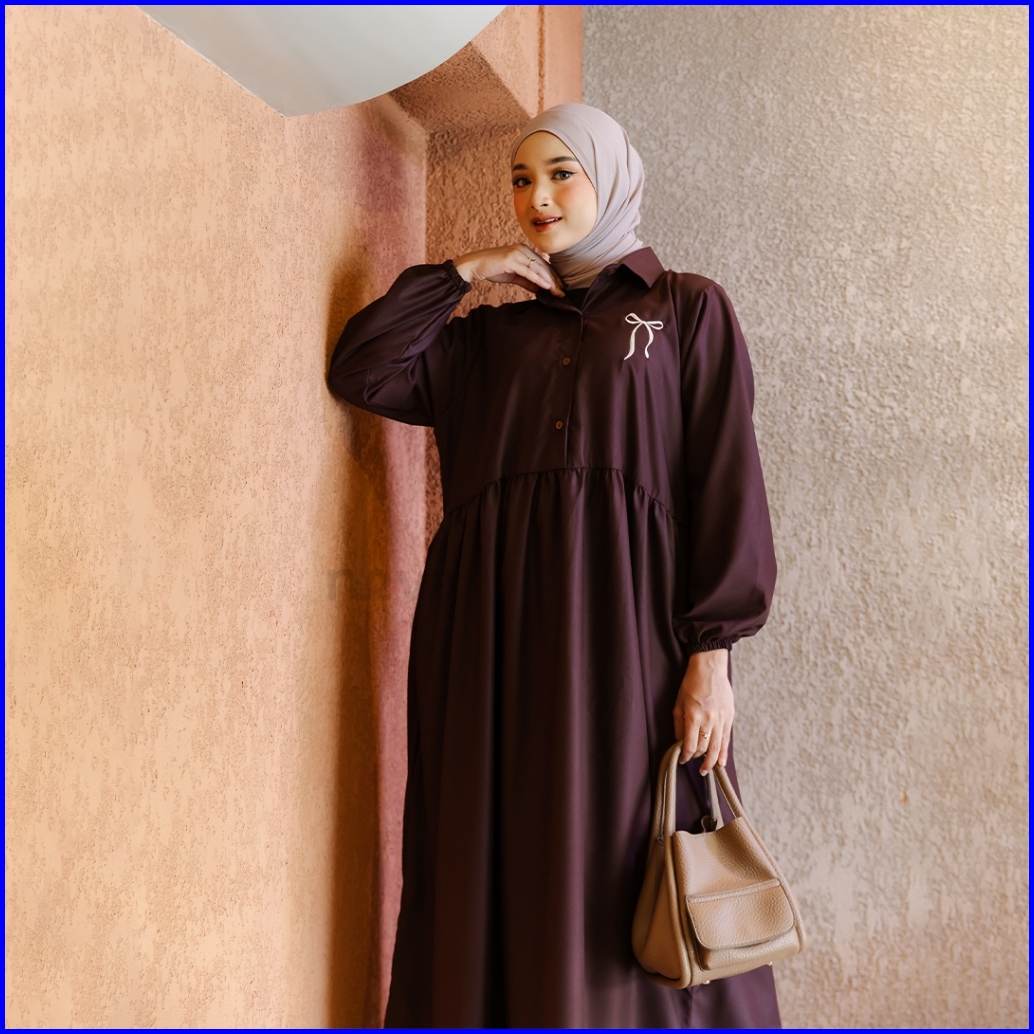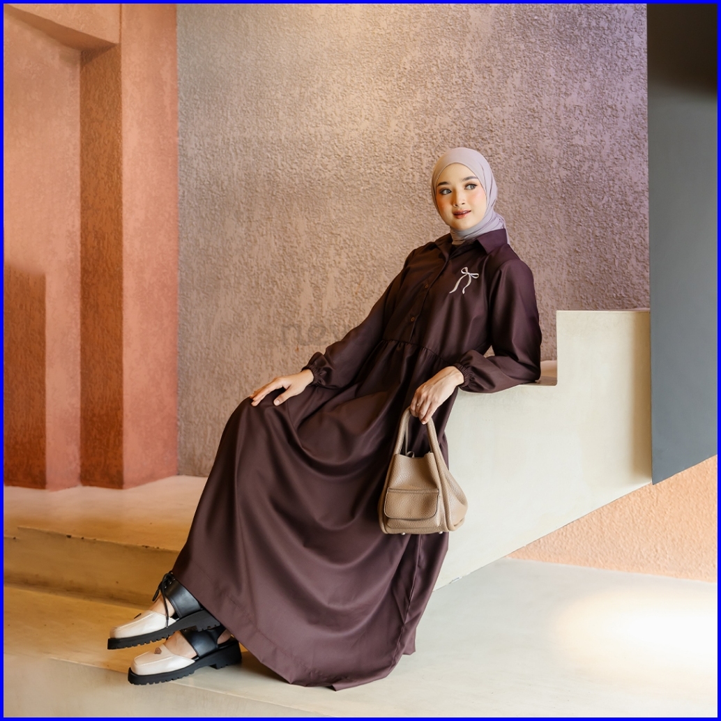 Neva Style - Runy Gamis Bordir Pita Kancing Aktif Dress Busui Friendly
