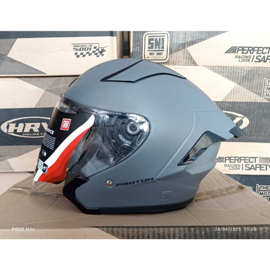 HELM HRV PROTON SOLID WARNA KOMPILT VISOR CLEAR/SILVER/SMOKE