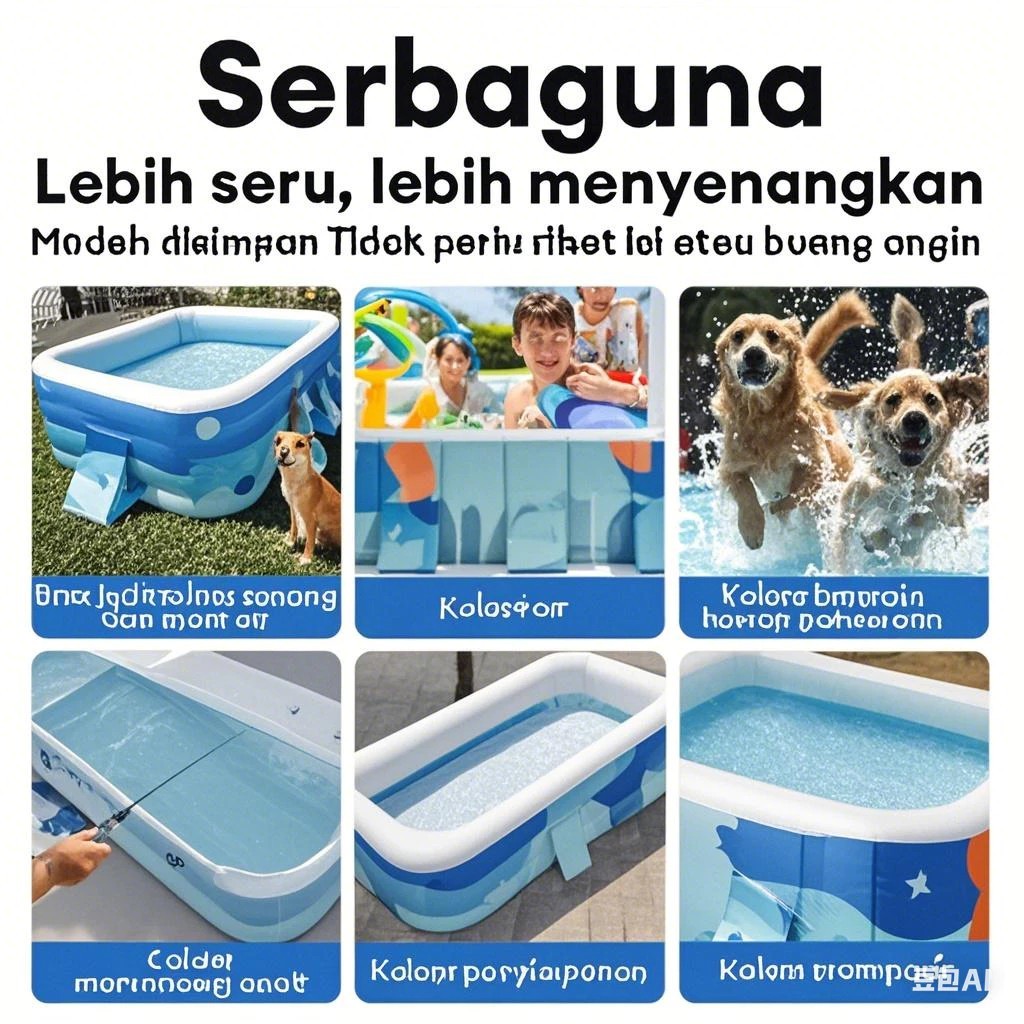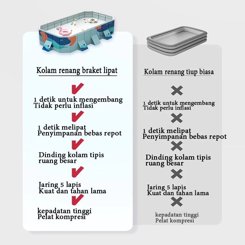 Kolam Lipat Jumbo Kolam Renang Anak Keluarga Jumbo Berkualitas Kolam Lipat Kotak Tanpa Pompa Untuk 1-10 Orang Swimming P