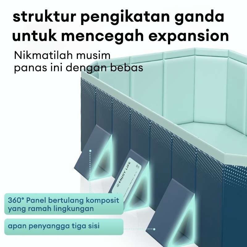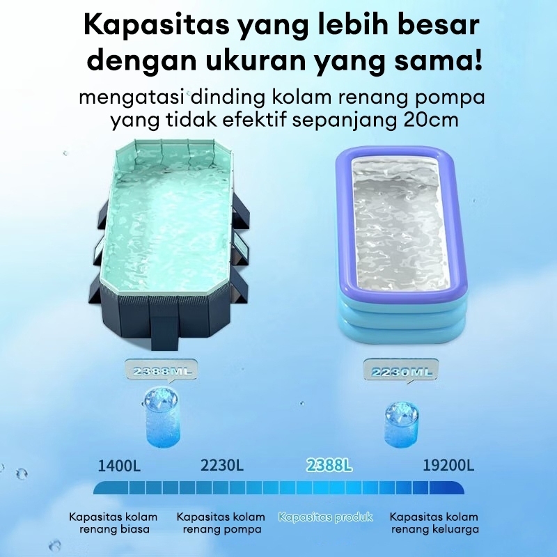 BEIGE Kolam Renang Anak Lipat Jumbo 3M Portabel Anti Bocor Bukan Tiup Cocok 1-10 Anak Bayi & Balita