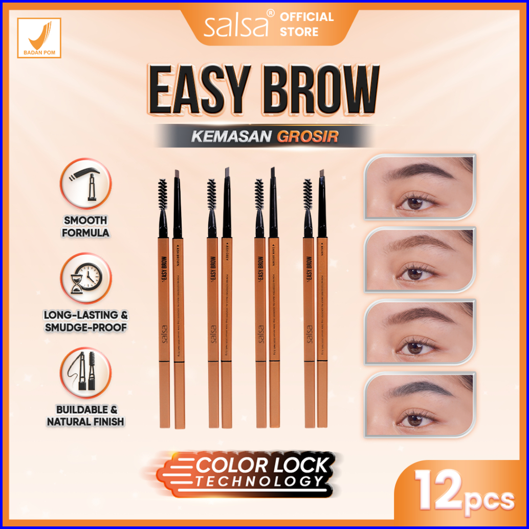 Lebih Murah Salsa Easy Brow Kemasan Grosir - Pensil Alis Putar Matic 2in1 Eyebrow Matic Pensil Alis Longlasting Waterpro