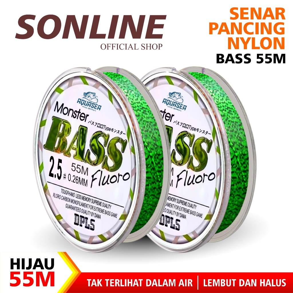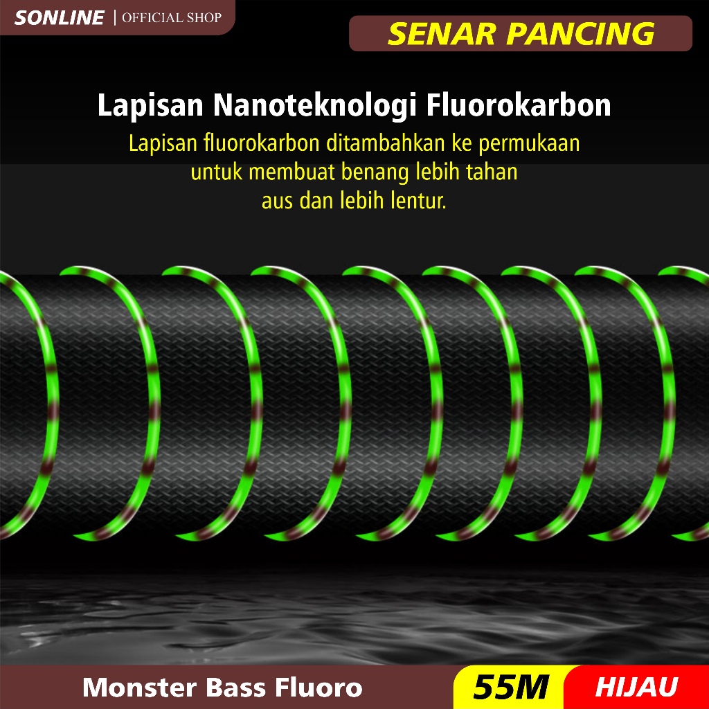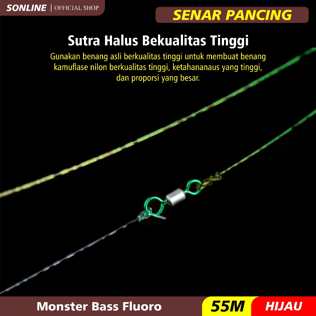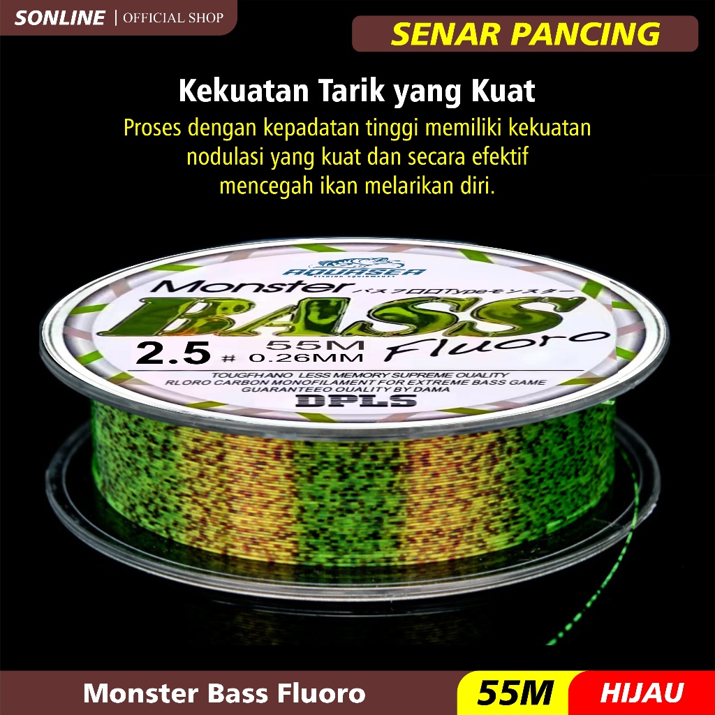 SONLINE Tali Pancing Bass FLUOROCARBON 55M Warna Hijau Senar Pancing Fishing Line Strength 1.80kg-10.8kg Sangat kuat