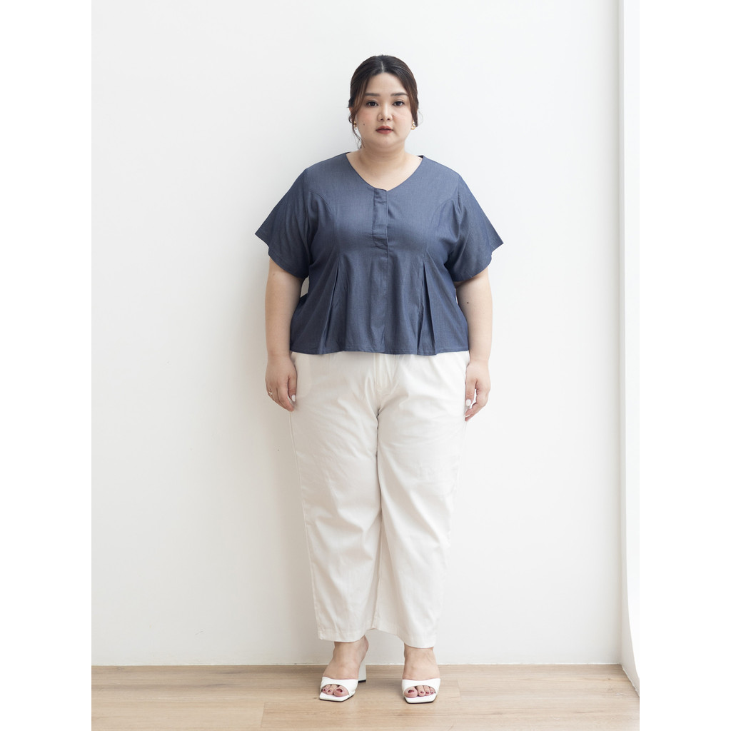 Eclaire - Cyra Top Normal Grande Bigsize Xtrasize | Atasan Soft Katun Denim Casual Work Wanita Korea S-L-XL-XXL Jumbo