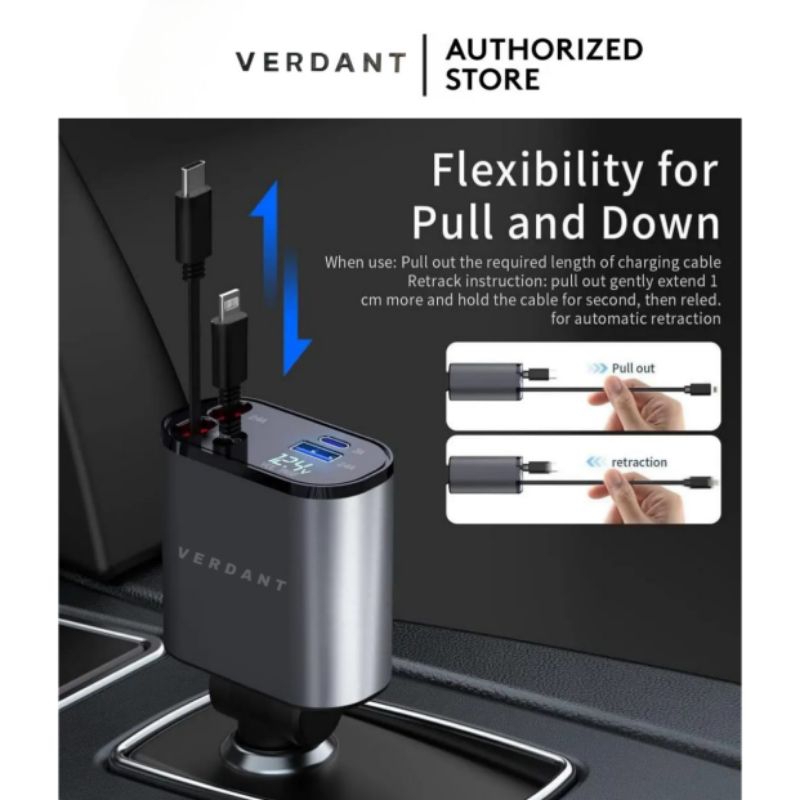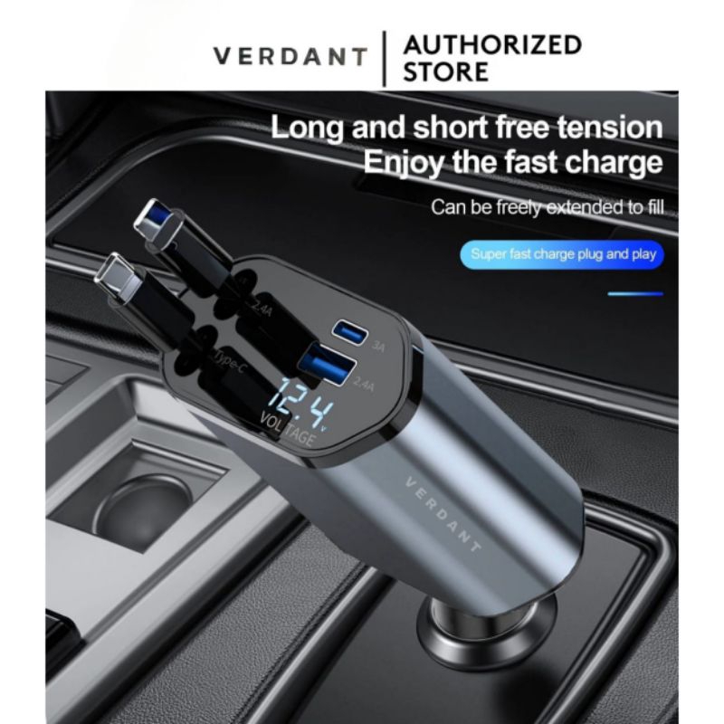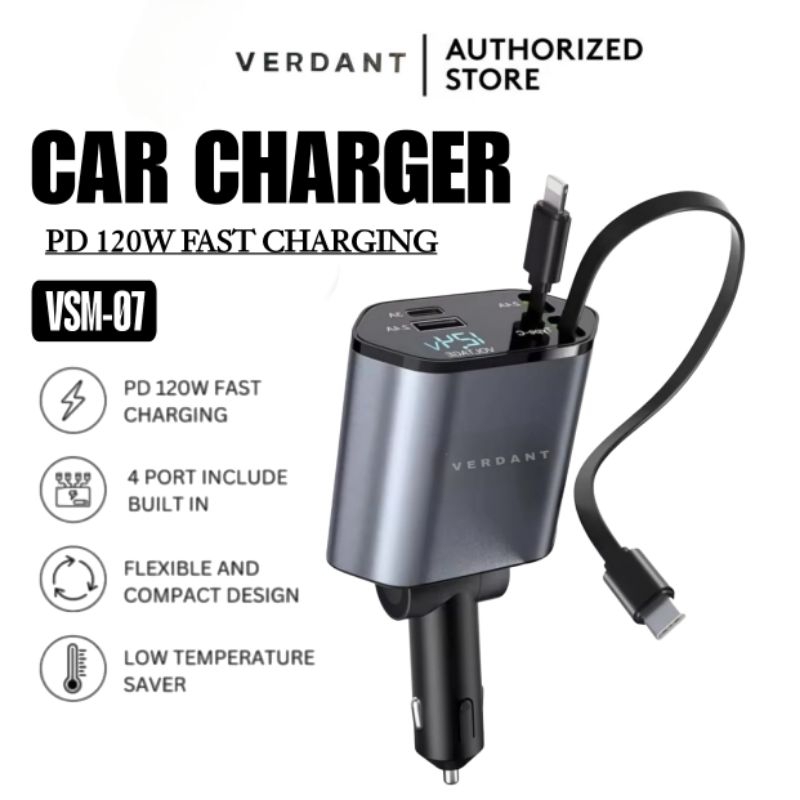 CAR CHARGER 4IN1 VSM-07 120W PENGISIAN DAYA CEPAT COLOKAN CHARGER MOBIL 4IN1 USB TYPE C IOS LIGHTNING ADAPTOR FAST CHARGING BY VERDANT