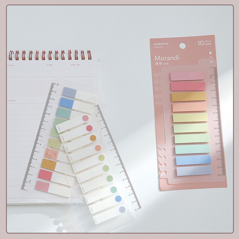 pembatas buku/penanda buku 200 Lembar Warna Sticky Notes aesthetic /Sticky Note Maron Morandi index Warna - Qiqi Treasur