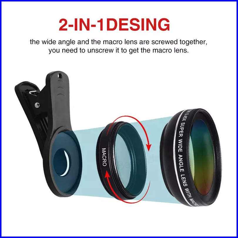 Suirge Klip Lensa Ponsel Universal Profesional 37mm 0 45x 49uv Sudut Ultra Lebar Lensa Ponsel Makro Dua Dalam Satu