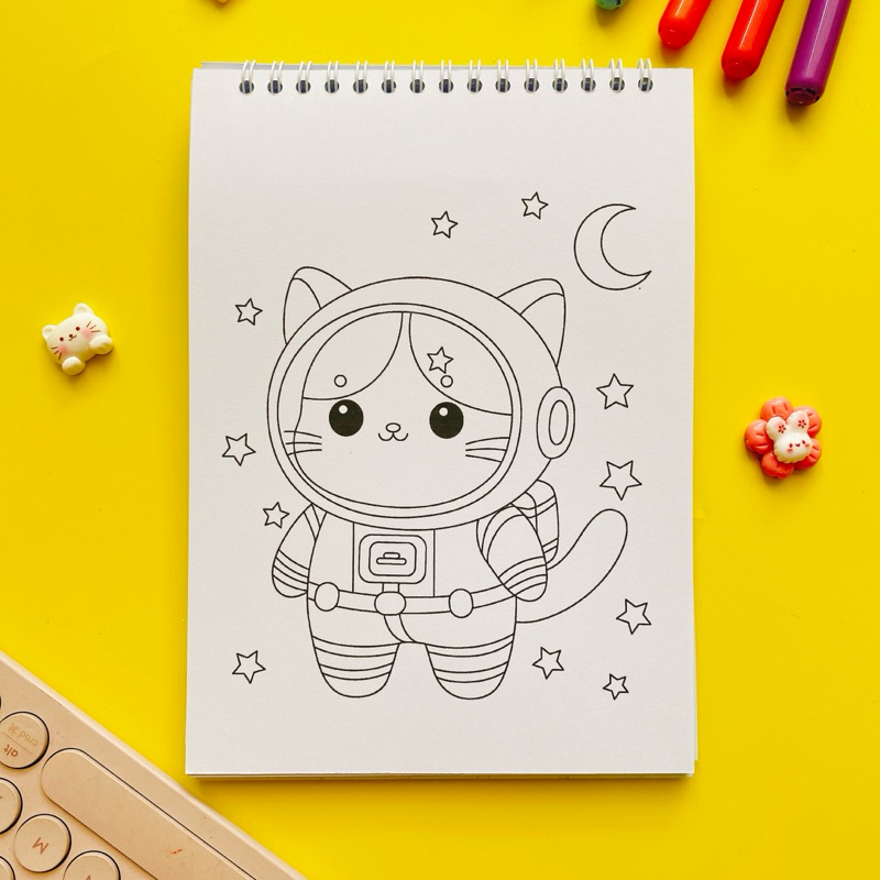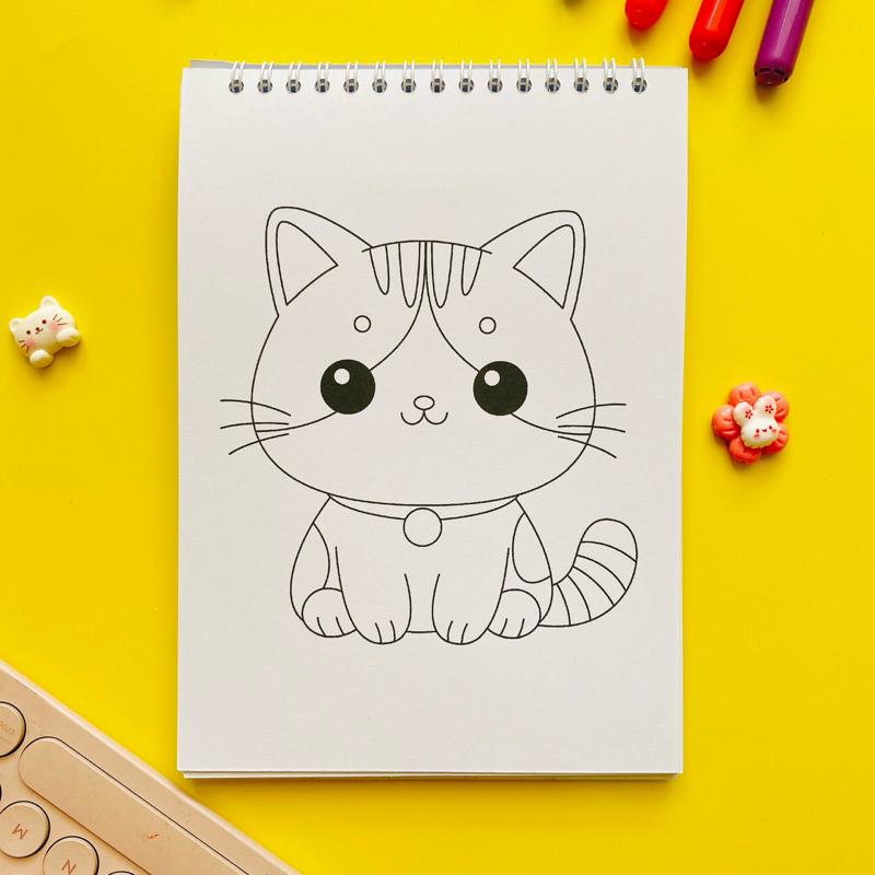 Cute Cat Coloring Book - Buku Mewarnai Simple Dan Mudah