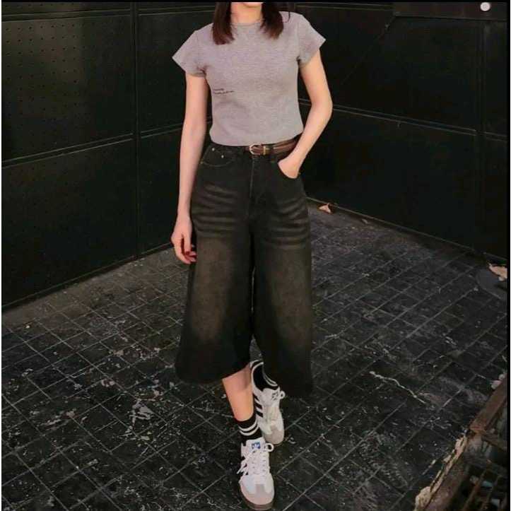 Celana Jeans Jorts Baggy Retro Street Style Wisker Korean Style Bisa untuk Pria dan Wanita