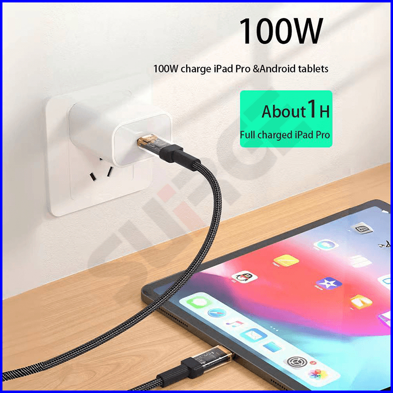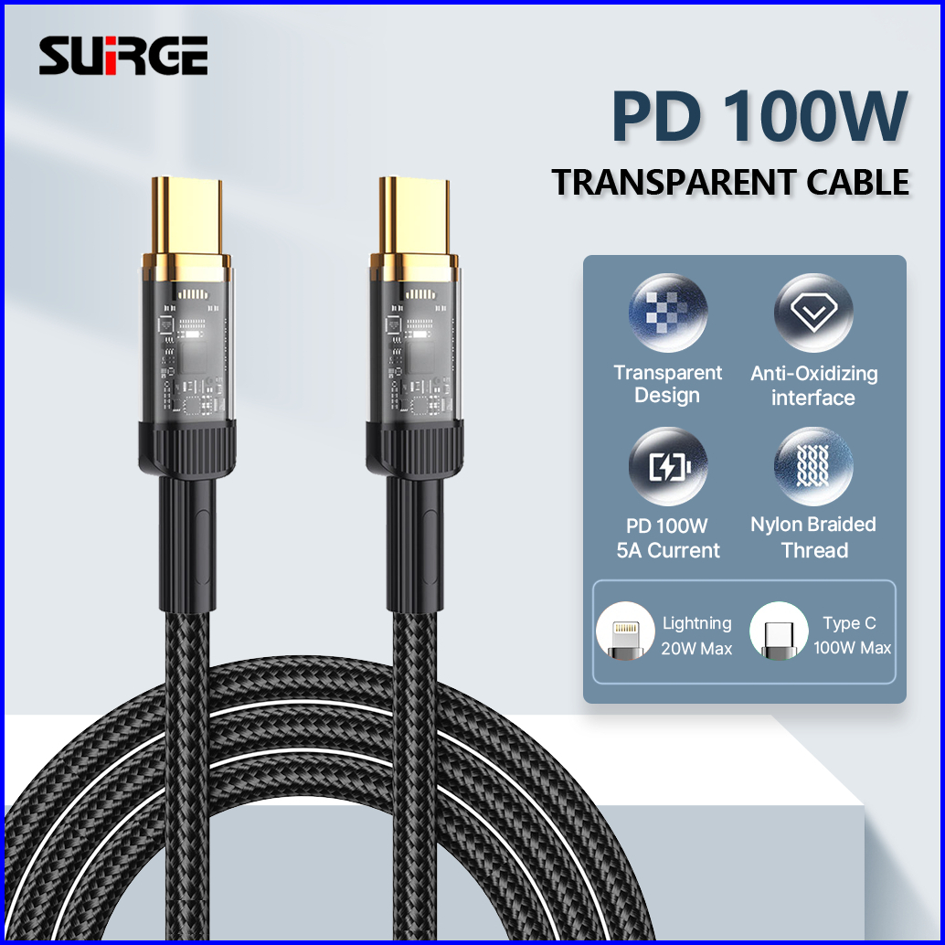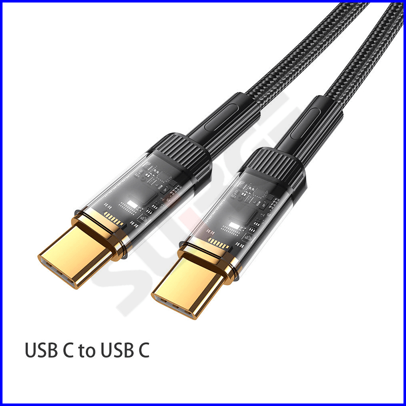 Suirge 100w 5a Transparent Cable Usb C To Usb C Display Led Cable 20w Pd Fast Charge Line 1m