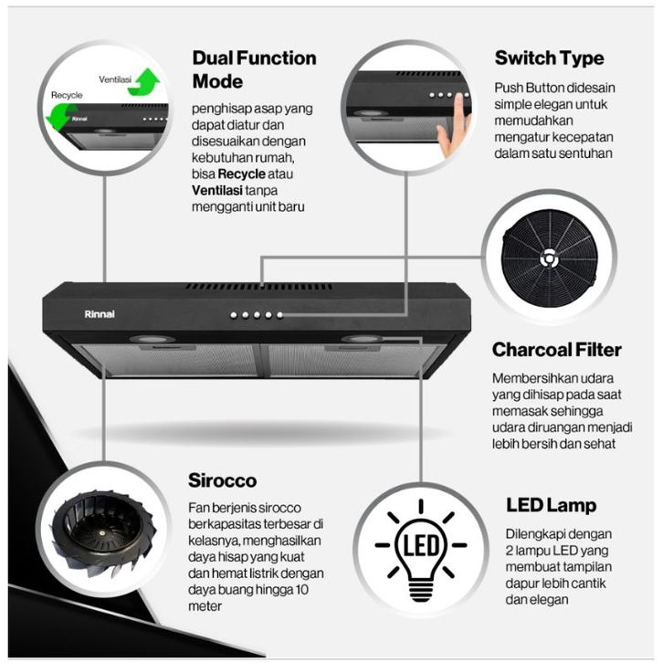 Cooker Hood Rinnai RH-126B Slim Hood Penghisap Asap Kompor