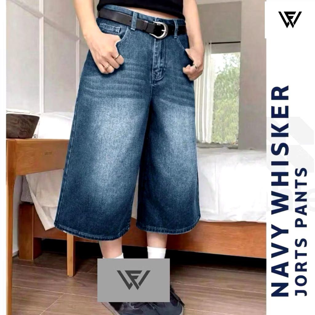 Jeans Jorts Baggy Short Wisker Pria dan Wanita Model Retro Skena Street Style Korean Look