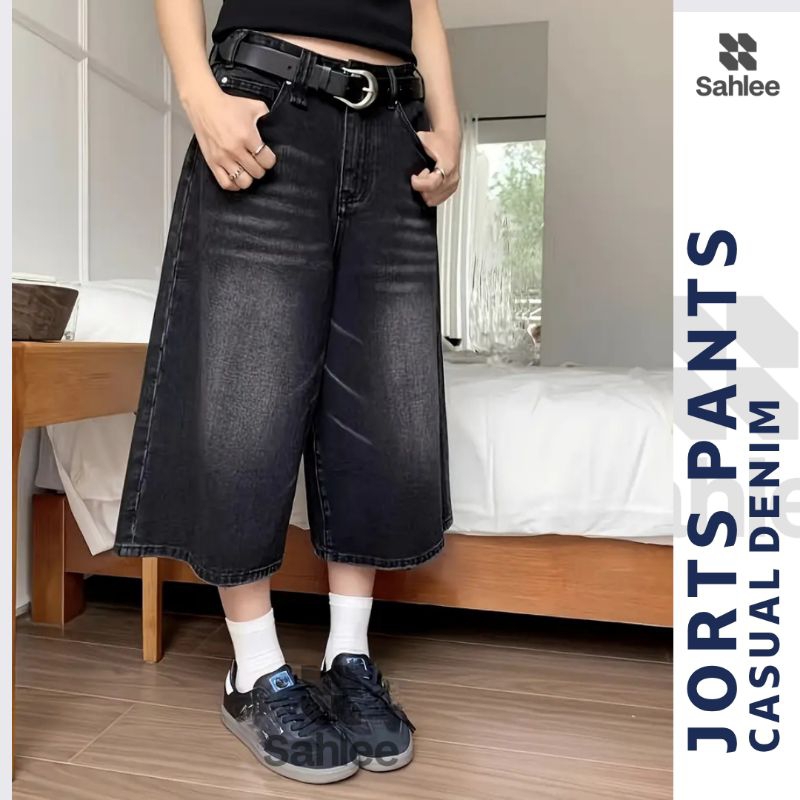 Celana Jeans Jorts Panjang Model Baggy Loose Fit High Waist Nyaman untuk Pria dan Wanita