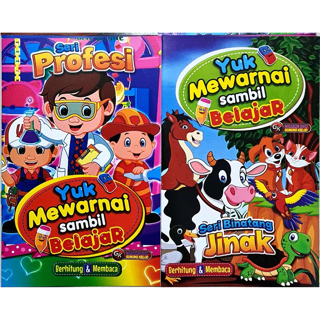 Buku Edukasi Anak Paket 10 Buku Mewarnai dan Belajar Anak Motif Buah, Sayur, Kendaraan, Binatang