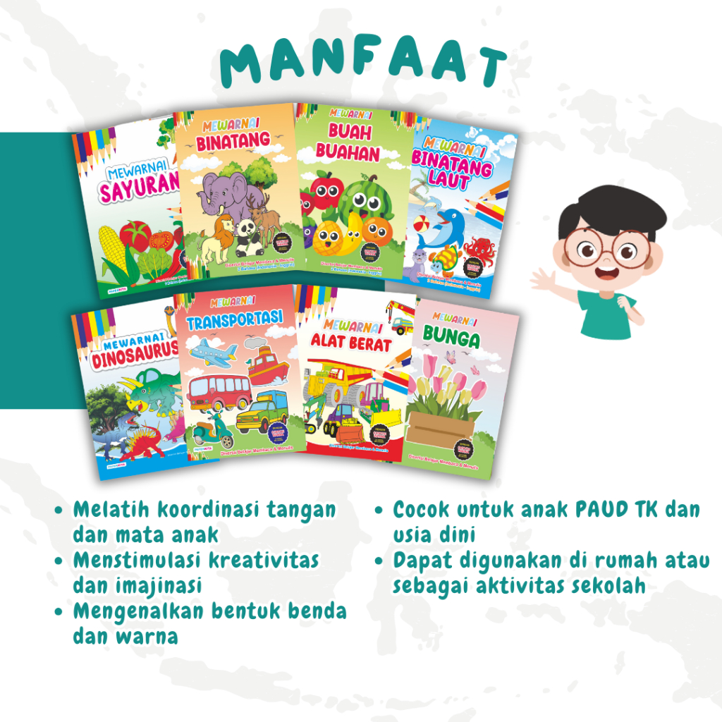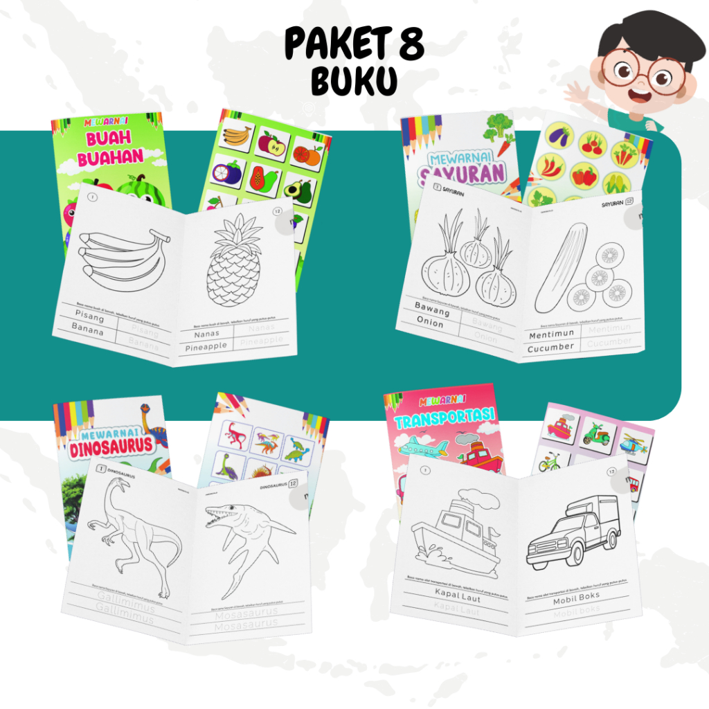 Paket Isi 8 Buku Mewarnai Menulis Coloring Book tivity Edukasi Anak 12 Halaman Bilingual Inggris