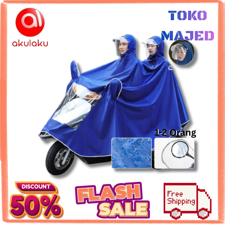 2 Kepala Full Cover Motor Raincoat/Jas Hujan Motor/Jas Hujan Topi Ganda Untuk 2 Orang