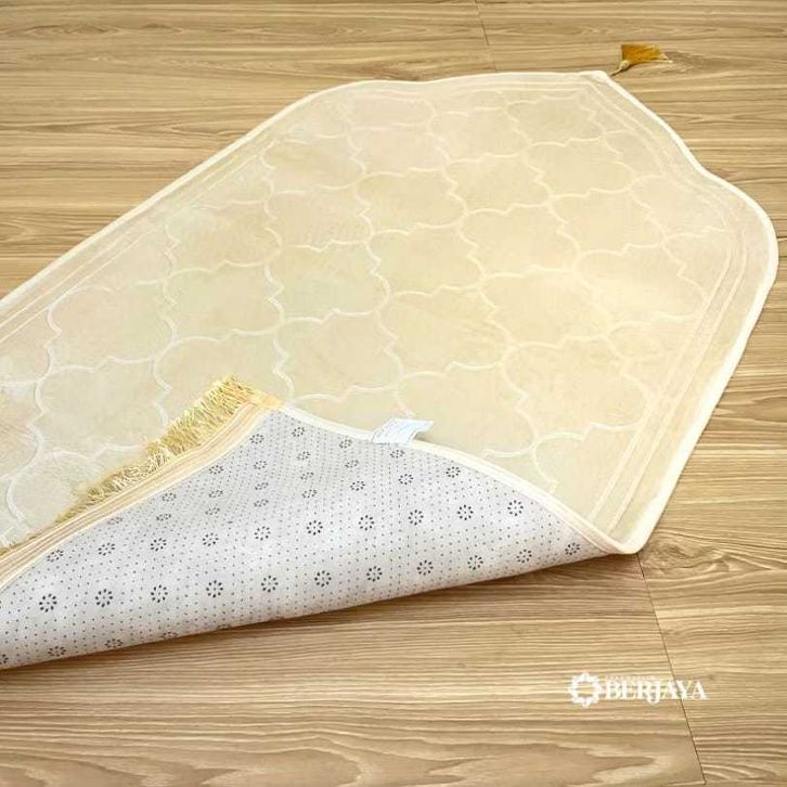 Sajadah Kubah Motif Embos / Sajadah Tebal Rumbai Anti Slip 70 x110