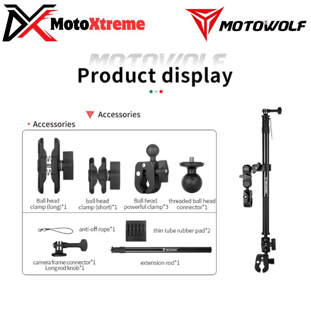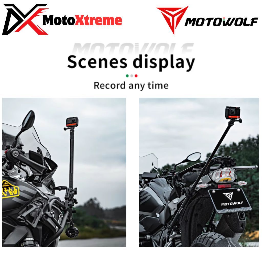 Motowolf Action Camera Insta360 & GoPro Mount Bracket Holder Kamera Motor | Adjustable Multi-Angle
