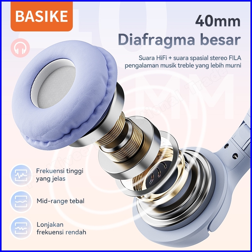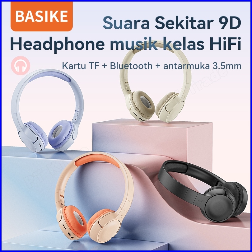 Basike Headphone Wireless Bluetooth Headset Gaming 9d Hifi Music Stereo Bass Makaron Original