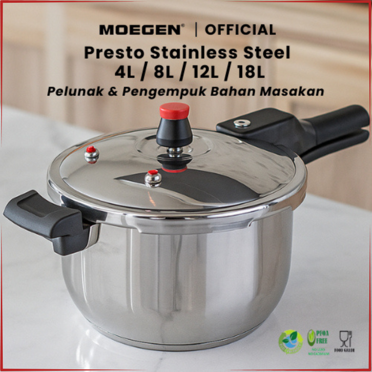 Panci Presto MOEGEN Panci Stainless Steel 4L/8L/12L Pressure Cooker Pelunak Daging Serbaguna Panci Listrik Anti Lengket