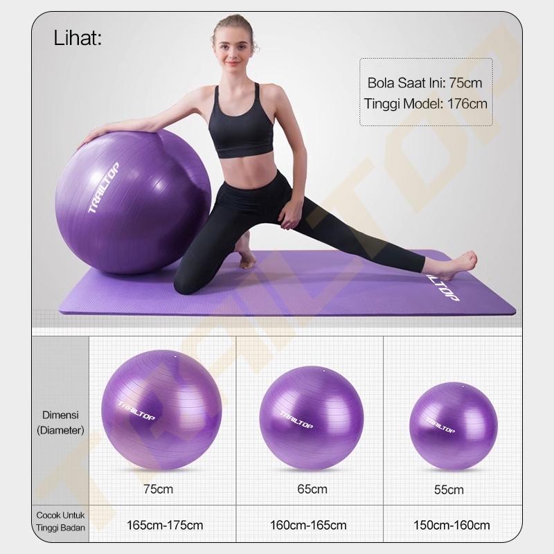 TrailTop Gym Ball Free Pompa Gym Ball Ibu Hamil 65/75cm Bola Yoga Alat Olahraga