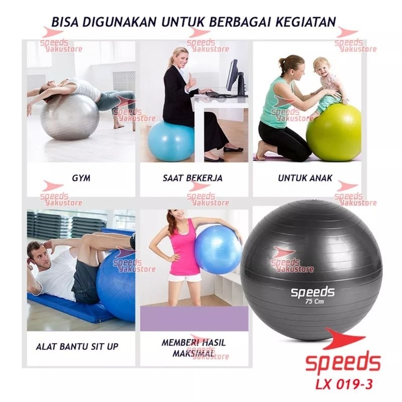 Bola Gym Ball Yoga Ball 75cm Speeds - Gym Ball Speeds Bonus Pompa