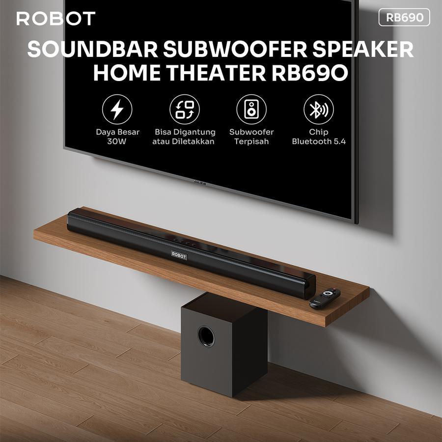 ROBOT RB690 Soundbar Speaker + Subwoofer Home Theater 30W Bluetooth 5.4 TV PC Aux 3.5mm Coaxial Micro SD - Garansi Resmi