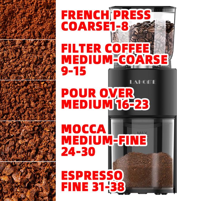 Grinder LAHOME Electric Conical Burr Coffee Grinder Adjustable Burr Mill dengan 38 Setting untuk