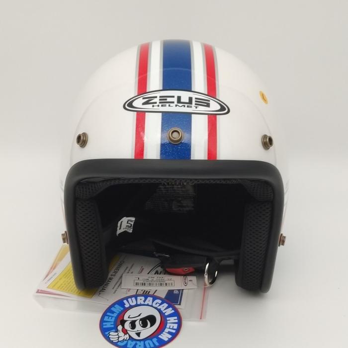 Helm Motor ZEUS ZS385 Z385 K63 WHITE/RED STRONGER RETRO