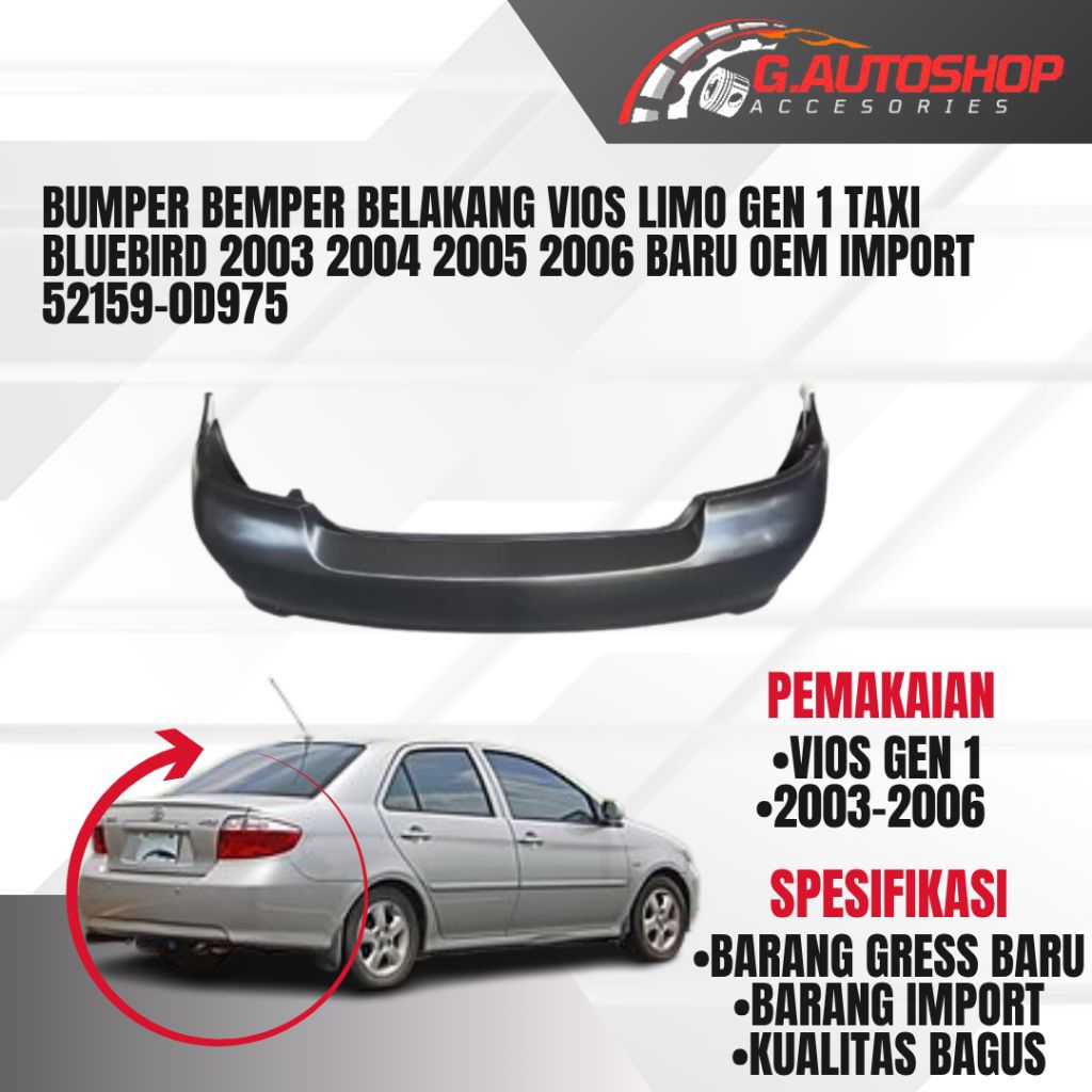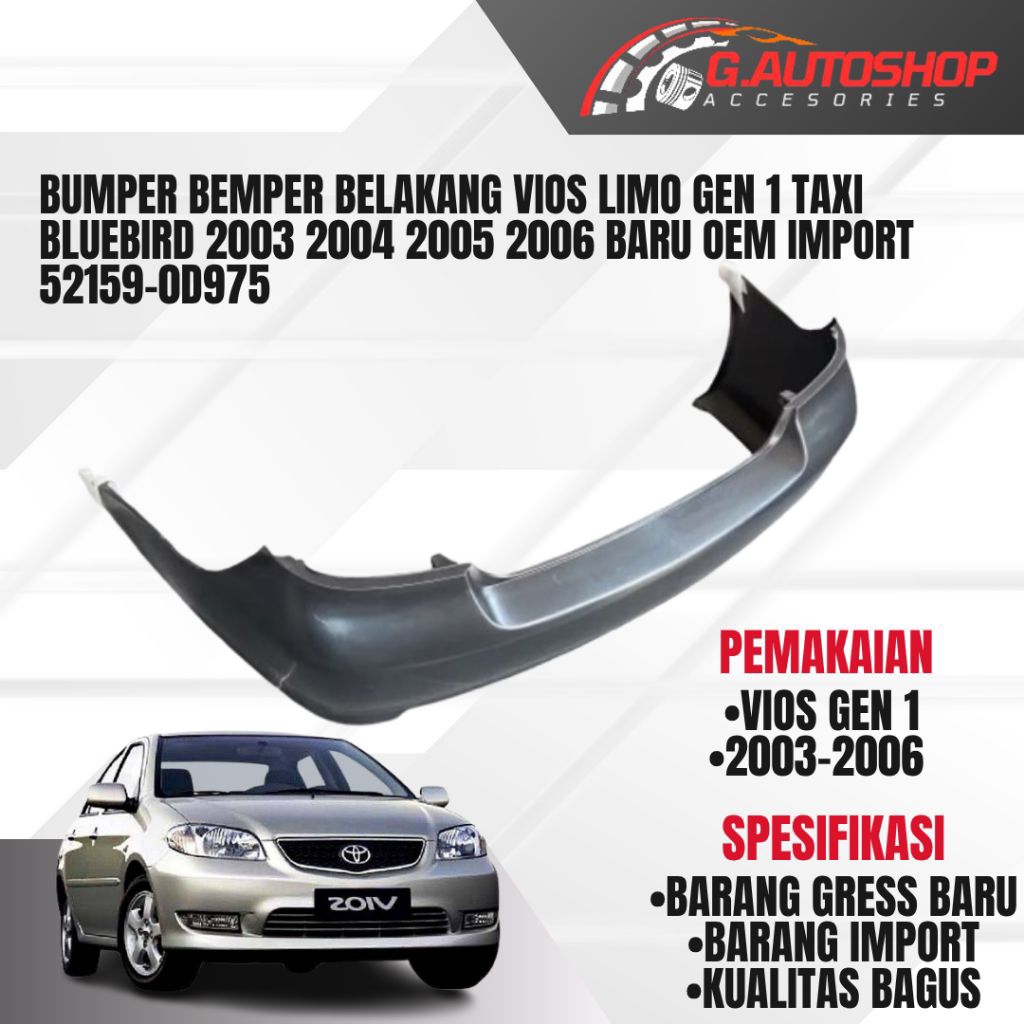 BUMPER BEMPER BELAKANG VIOS LIMO GEN 1 TAXI BLUEBIRD 2003 2004 2005 2006 BARU OEM IMPORT 52159-0D975