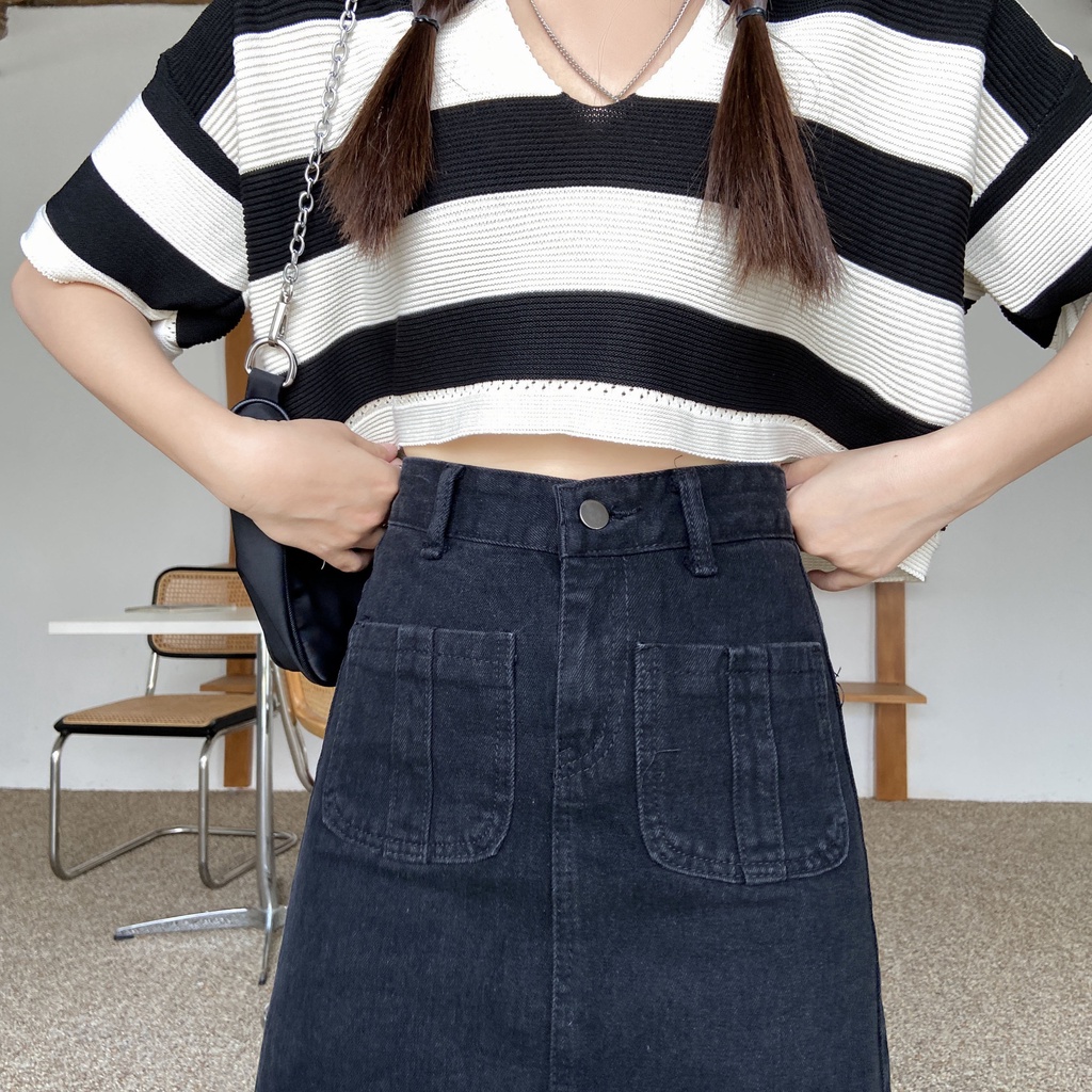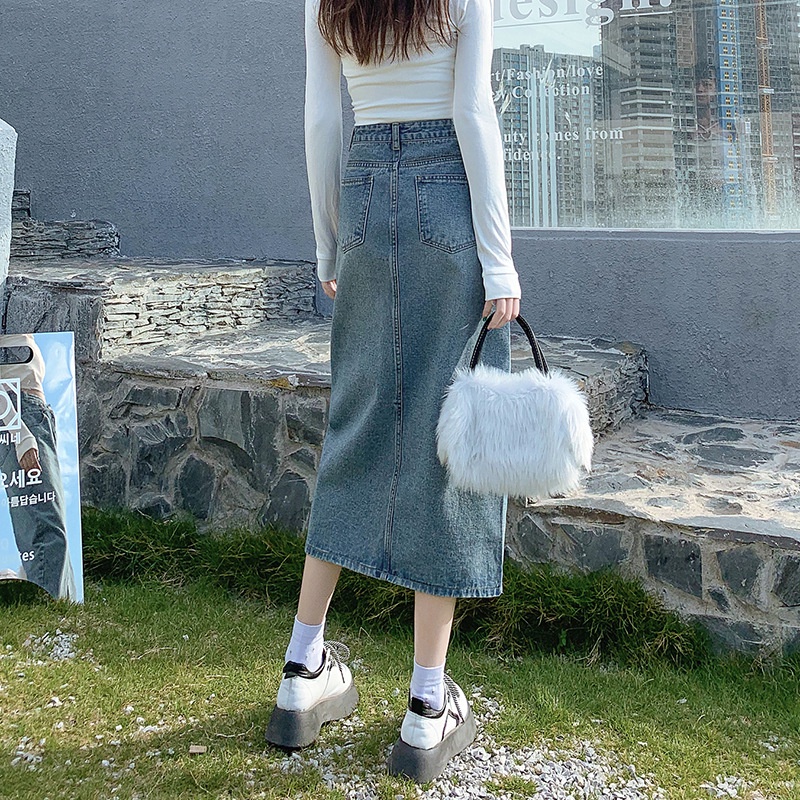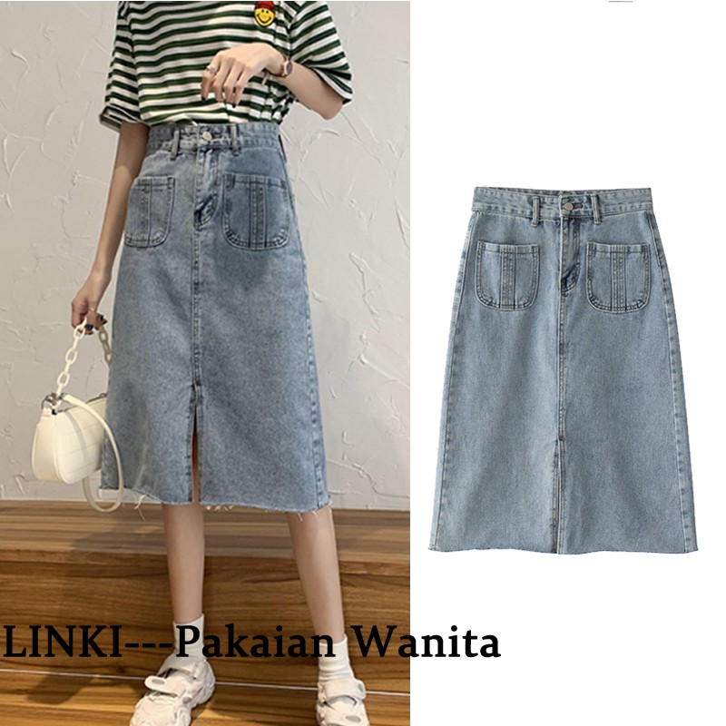 Yikoo-Rok Denim Wanita Korean Style Skirt Midi / Maxi Skirt