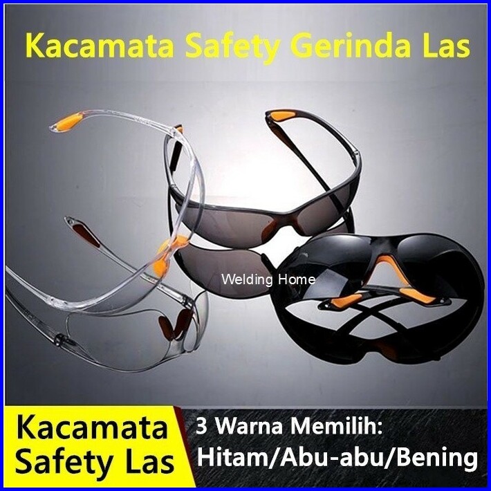 New Kacamata Safety Las Kaca Mata Gerinda Glasses Bening Clear Putih Hitam Abu2