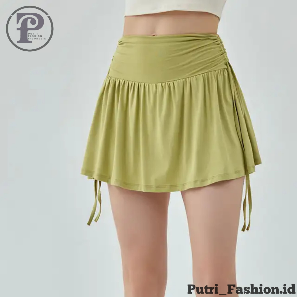 Rok Olahraga Wanita Skirt Sport Jogging Renang Sepeda Lari Zumba Tali Serut Di Samping Korean Style