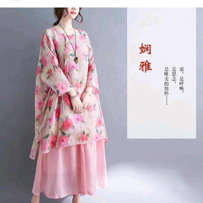 TUNIC WANITA KIMONO BUNGA IMPORT BANGKOK DUSTY FLOWER, OVERSIZE