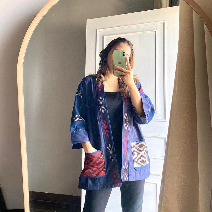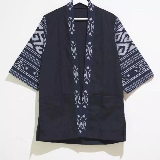 KIMONO TENUN ETNIK OUTER PRIA BLAZER WANITA BAJU TENUN BLANKET KOMBINASI TOYOBO ATASAN S, BIRU